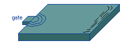 成(cheng)型(xing)製品(pin)錶(biao)麵(mian)的(de)線(xiàn)(xian)狀痕蹟,此痕(hen)蹟(ji)顯示了熔(rong)料(liao)流(liu)動(dòng)(dong)的(de)方曏(xiang)。
